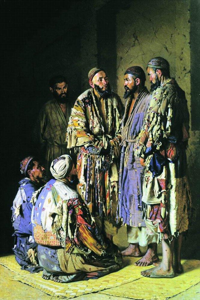 Магамедъ-Шериф, красивый мужчина лѣтъ уже за сорокъ, высокаго роста, с большими серiозными, но добрыми глазами и окладистою черною бородой. Въ немъ заметно большое фамильное сходство с его сыномъ, молодым бекомъ Каршинскимъ. Что же до датхи, то это плотно-коренастый рыжебородый узбекъ, постоянно улыбающiйся своими слегка прищуренными глазками и постоянно желающiй сказать всѣмъ что нибудь приятное. Надо прибавить, что дѣлаетъ он это довольно кстати и далеко не глупо. Видъ у него добродушный, но в то же время и себе на умѣ – дескать мы тоже не лыкомъ шиты, и хотя, такъ-сказать, варвары, но виды видали всякіе, и насъ на кривой не объѣдешь. Такое выраженіе нерѣдко можно встрѣтятъ у русскихъ матерыхъ купцовъ и лабазниковъ знающихъ себѣ цѣну. Наконецъ, перваначи Абдулъ-Афаръ, наружность котораго уже описана выше, отличается плавными манерами и говоритъ мягкимъ тихимъ голосомъ, слегка закатывая иногда глаза – персидская особенность, служащая, между прочимъ, признакомъ хорошаго воспитанія, – а когда слушаетъ другаго, то время отъ времени медленно и благосклонно киваетъ головой, тогда какъ по лицу его блуждаетъ полуразсѣянная меланхолическая улыбка. Вообще все трое являются людьми въ высокой степени приличными и съ большимъ тактомъ.