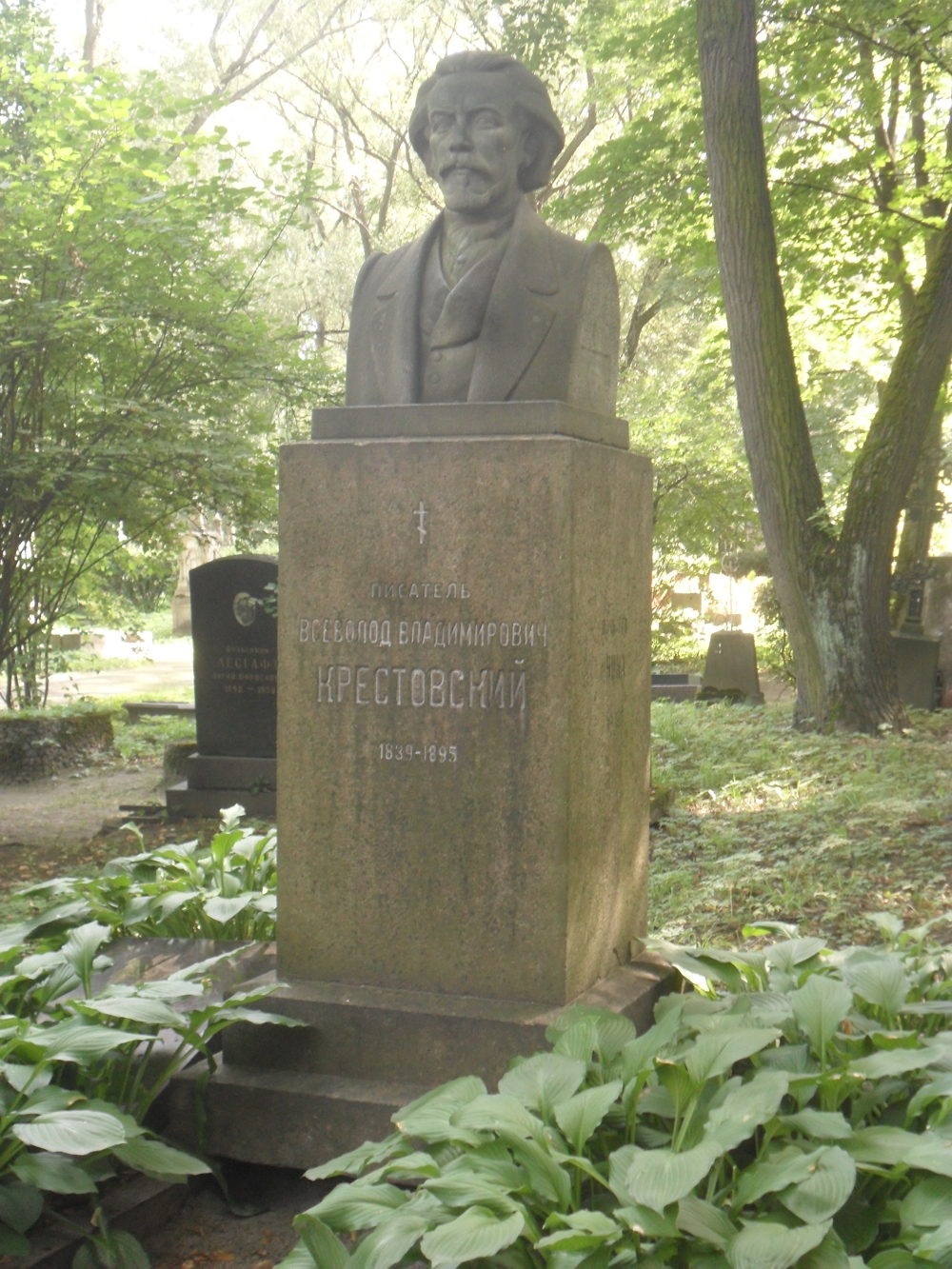 Похоронили В.В. Крестовского около Никольской церкви, недалеко от могилы А.Г. Рубинштейна.