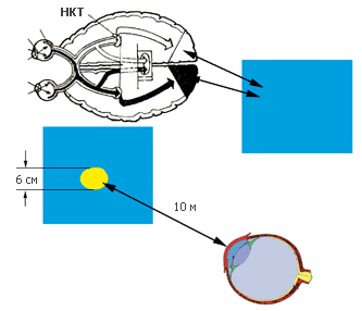 Рис. 57. Опыты каунасского исследователя Альгиса Бертулиса, ученика В.Д. Глезера, продемонстрировали, что более яркий фон «закрашивает» детали малого размера, и на большом расстоянии мы их просто не видим! Например, белое пятно диаметром 6 см сливается с фоном (в данном случае голубым) уже на расстоянии 10 м