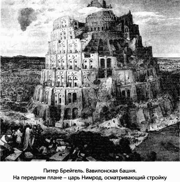 «Двинувшись с востока, они нашли в земле Сеннаар{53} равнину и поселились там. И сказали друг другу: наделаем кирпичей и обожжем огнем. И стали у них кирпичи вместо камней, а земляная смола{54} вместо извести. И сказали они: построим себе город и башню, высотою до небес, и сделаем себе имя, прежде нежели рассеемся по лицу всей земли. И сошел Господь посмотреть город и башню, которые строили сыны человеческие. И сказал Господь: вот, один народ, и один у всех язык; и вот что начали они делать, и не отстанут они от того, что задумали делать; сойдем же и смешаем там язык их, так чтобы один не понимал речи другого. И рассеял их Господь оттуда по всей земле; и они перестали строить город. Посему дано ему имя: Вавилон, ибо там смешал Господь язык всей земли, и оттуда рассеял их Господь по всей земле» (Быт. 11:2–9).