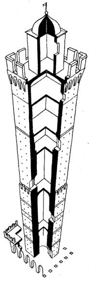 9. Башня Азинелли. Болонья. 1100 – 1109 годы. Перспективный разрез
