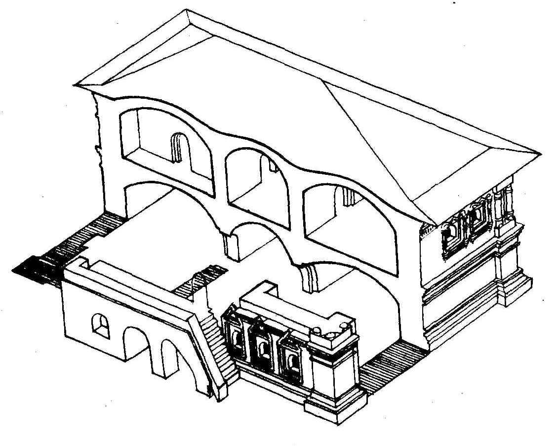17. А. Палладио (1508 – 1580). Собственный дом архитектора. Виченца. Италия. Совмещенное изображение. Аксонометрия, разрез