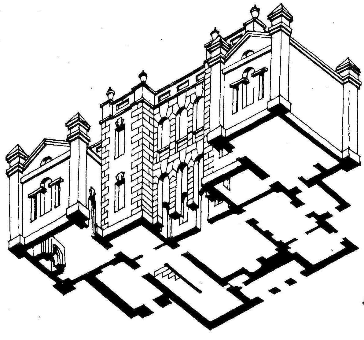 14, 15. Литл Мортон Холл. Графство Чешир, Англия. XV – XVI века. Конструктивная схема. Перспектива с юго-восточного угла