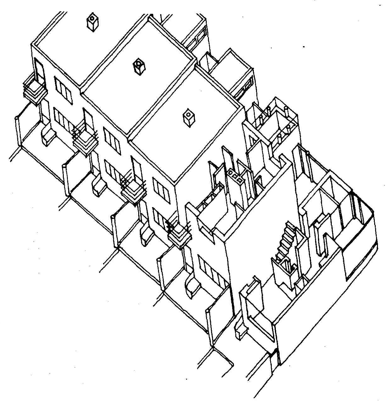 35. А. Сильченков, Т. Варенцов, С. Гельфельд. Жилая ячейка на одного человека. 1929 год. Аксонометрия