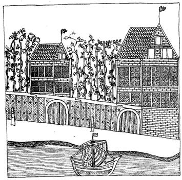 53. Пригород. Застройка набережной. 1578 – 1686 годы. Фрагмент так называемого Ростокского свитка, созданного Вике Шорлером