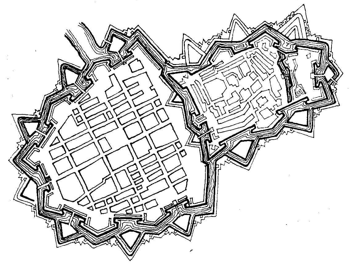 Выполненный И. Ушаковым и его подчиненными по распоряжению Петра I план Киева был составлен для того, чтобы точно рассчитать объем и характер фортификационных работ по схеме вобановой науки, то есть аналогично Нанси (рис. 54). Частично, как известно, программа была реализована.