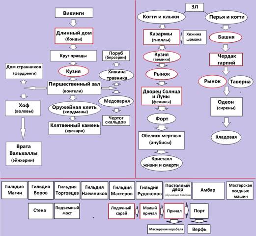 Третий вариант – ветка викингов. И тут сам Один велел идти напрямик к получению топовых юнитов – эйнхериев. Воины седьмого ранга, с отличными боевыми навыками, защитой от магического урона и особой способностью, усиливающей на двадцать пять процентов физические характеристики и показатели защиты у сражающихся рядом с эйнхериями викингов. Да, эти юниты были очень хороши, притом нанимаясь по двое в неделю. А чтобы их получить, требовалось возвести лишь четыре постройки – Круг правды, Пиршественный зал, Хоф и, наконец, Врата Вальхаллы. Причем попутно можно было приобрести воителей и волхвов, что уж точно были не лишними. Особенно волхвы.