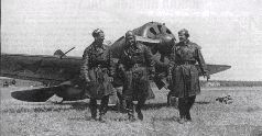 Летчики А.А.Мурмылов, И.П.Сахаров и П.Г.Митягин возле истребителя И-16 тип 10.