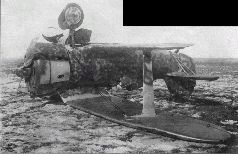 Авария младшего лейтенанта Давиденко из 22-го иап. Помимо полосы вокруг фюзеляжа, на этом истребителе нанесены широкие белые полосы на консолях крыла.