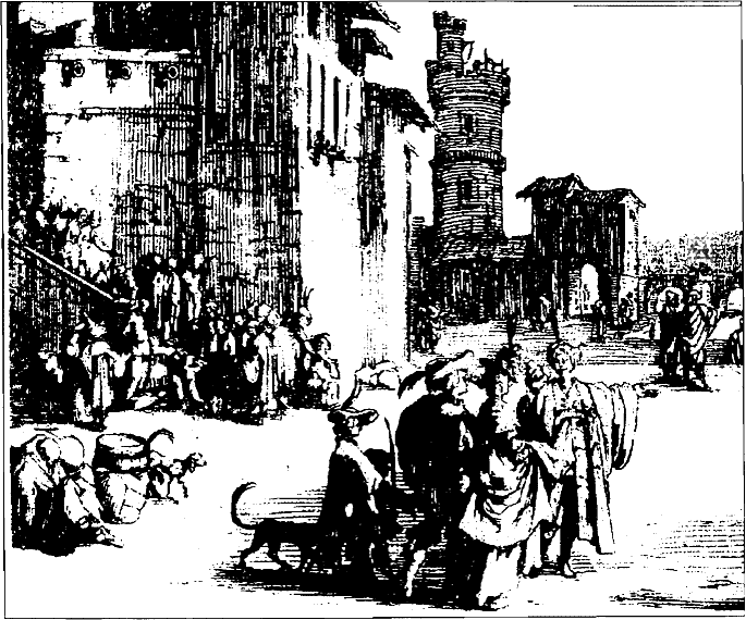 У «черных дверей» служители раздавали калекам и нищим старые костыли, одеяла, простыни, полотенца.