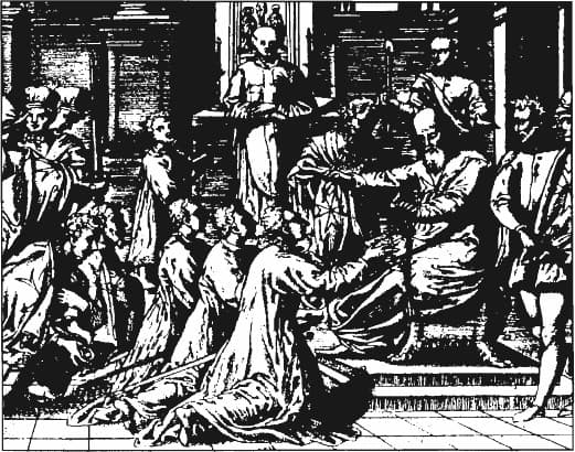 Галера была нашпигована военным людом. На ее передней боевой площадке, за деревянным барьером с проемами для пушек, теснились рыцари с белыми крестами на левой стороне груди, солдаты в красных куртках. Вздымал высоко над головой распятие священник в черной рясе. Грозно сверкали на солнце сабли и палаши, дула мушкетов. Донесся усиленный рупором голос: