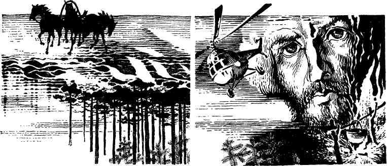 Иосиф повернул упряжку в тайгу, и мы полезли напролом. Как нам не повыхлестало глаза, как мы не увязли и не переломали ноги в черной чащобе, как не угробили нарты на диких завалах – до сих пор удивляюсь, но более всего удивляюсь другому: на одной из полян Иосиф остановился и, подняв лицо, долго принюхивался, потом махнул рукой: