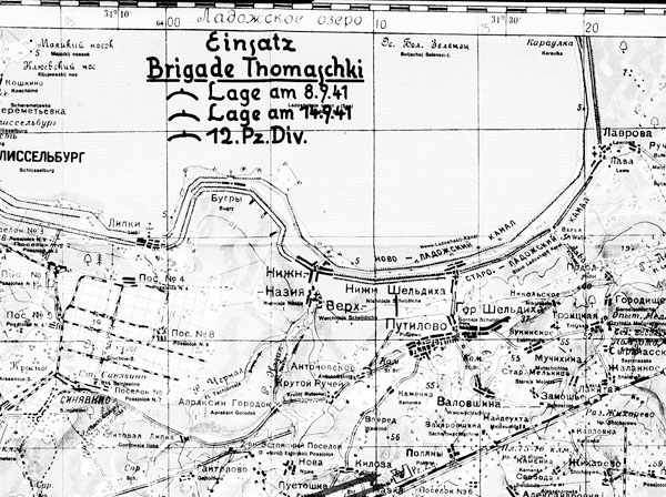 Перед захватившим Шлиссельбург 39-м моторизованным корпусом Рудольфа Шмидта (12-я танковая дивизия, 20-я моторизованная дивизия, 424-й пехотный полк 126-й пехотной дивизии) была поставлена задача продвижения на восток, к Волхову и соединения с финнами[10]10