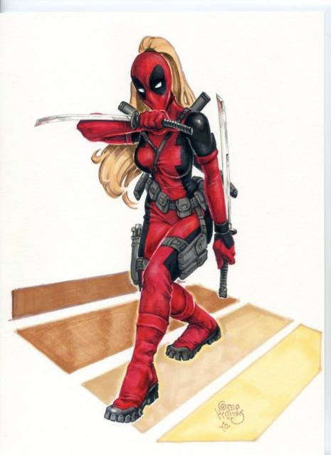 После пары ударов дверь машины просто отвалилась и наружу легко выпрыгнула женская фигура в странно знакомом красно-черном костюме. Две скрещенных за спиной катаны, черные нашивки на выпуклой груди, выбивающиеся длинные золотые волосы из-под маски и пояс с многочисленными кармашками. Ах да, еще пара тяжелых даже на вид пистолета. Да, судя по всему, это еще не весь ее арсенал. Леди Дедпул? Или кто она в этом мире?..