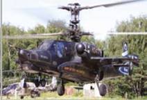 Одноместный армейский боевой вертолет соосной схемы с двумя двигателями ТВ3-117ВМА мощностью 2200 л.с. и мощным стрелково-пушечным и ракетным вооружением. Первый полет выполнен 17 июня 1982 г. На фирме «Камов» в 1982–1990 гг. было построено пять опытных экземпляров. Ка-50 выпускался серийно ААК «Прогресс» в г. Арсеньев с 1991 г. До 1998 г. здесь было построено 12 серийных вертолетов, часть из которых поступила в Армейскую авиацию России. Ка-50 принят на вооружение Российской Армии 28 августа 1995 г