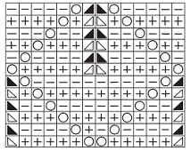 Основной узор: вяжите по схеме (рис. 40), на которой представлены только лицевые ряды. В изнаночных рядах все петли вяжите по рисунку.