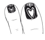 – прикрепить наклейки-сердечки к ногтям больших пальцев, располагая их в центре рисунка;