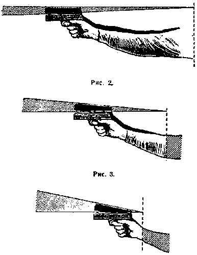 Глаз не успевает контролировать слишком частые, мгновенные отклонения, и они кажутся стрелку незначительными. А на самом деле здесь получается громадный угол отклонения ствола, так как его вершина – рядом с рукояткой пистолета, в запястье (рис. 4).