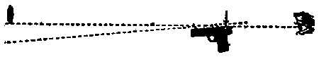 1. Рука колеблется, как одно целое, не сгибаясь ни в локте, ни в запястье. Это плавные, медленные колебания; пистолет "похаживает". Даже при довольно значительном "похаживании" ствол отклоняется от своего направления на небольшой угол, так как вершина угла находится далеко от пистолета – в плечевом суставе (рис 2).