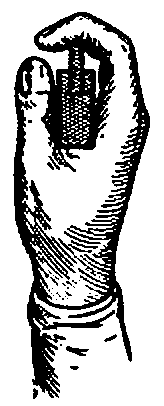 А чтобы давление пальца не отклоняло пистолет куда-нибудь вбок, он должен касаться спускового крючка своим первым суставом и совершенно не касаться рукоятки (рис. 15). Иначе пистолет может получить ощутимое угловое отклонение за время от срыва курка с боевого взвода до вылета пули из ствола.