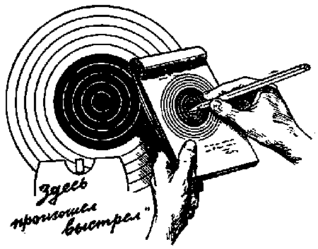 Отметка выстрела позволяет даже подсчитать "очки" по карандашным "пробоинам" на отчетной мишени (рис. 16). Действительная стрельба, проводимая время от времени, покажет, насколько точно вы научились отмечать выстрел.
