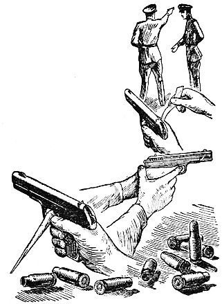 …Как-то, много лет тому назад, я услышал такую же жалобу от двух офицеров, систематически не выполнявших уставные упражнения. Один говорил, что его револьвер бьет на два метра вправо, другой, как и вы, обвинял свой наган в немыслимом разбросе пуль… Я предложил им пойти в тир и, не пожалев по три патрона, дать мне самому опробовать каждый из револьверов, подозреваемых в саботаже.
