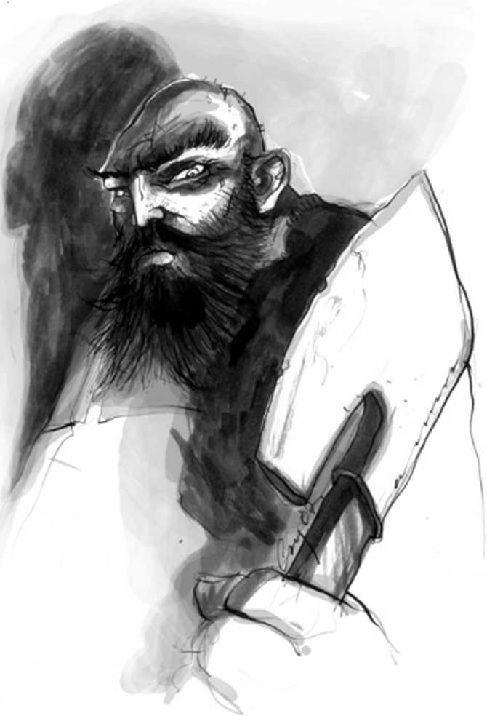 Дверь распахнулась шире, и Дыдыньский обомлел. Корчмарь возвышался над ним на добрые две головы. Широкий в плечах, словно медведь, он напоминал настоящую гору мышц. Глядя на трактирщика, Дыдыньский понял, зачем изобрели тяжёлые мушкеты и короткие ружья для пехоты. Хотя, пожалуй, с этим человеком справился бы разве что фальконет, заряженный доброй картечью. Могучее брюхо трактирщика смахивало на пивную бочку. Обтягивающий его фартук был заляпан чем-то подозрительно напоминающим кровь. От трактирщика исходила такая зловещая аура, что Дыдыньскому почудилось, будто его обдало ледяным холодом.