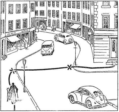 Знакомый путь зависит лишь от конкретного субъекта и потому является типичной проблемой окружающего мира. Знакомый путь – это проблема пространства, связанная вместе с тем со зрительным пространством и пространством действия субъекта. Это можно понять по тому, как мы описываем знакомый путь, к примеру: за красным домом повернуть направо, затем пройти сто шагов прямо, потом свернуть налево. Для описания пути мы оперируем тремя типами признаков: 1) оптическими признаками; 2) плоскостями, заданными системой координат; 3) шагами ориентации. В таких случаях используется не элементарный шаг ориентации, то есть не наименьшая единица движения, а привычное для нас сочетание элементарных импульсов, которое требуется нам для осуществления шагов при хождении.