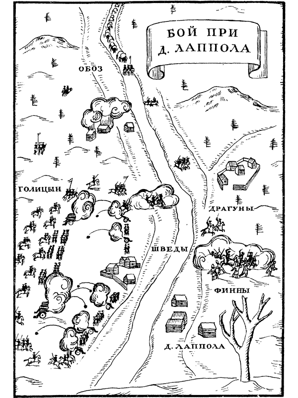 Около полудня шведы пошли вперед, перешли реку. Все передвижения и шведов и русских в тот день совершались медленно – по колено, а то и по пояс в снегу. Подойдя к русским на расстояние ружейного выстрела, неприятельская пехота открыла огонь. «Сколько воевал, а такого сильного огня не видел!» – говорил потом Голицын.