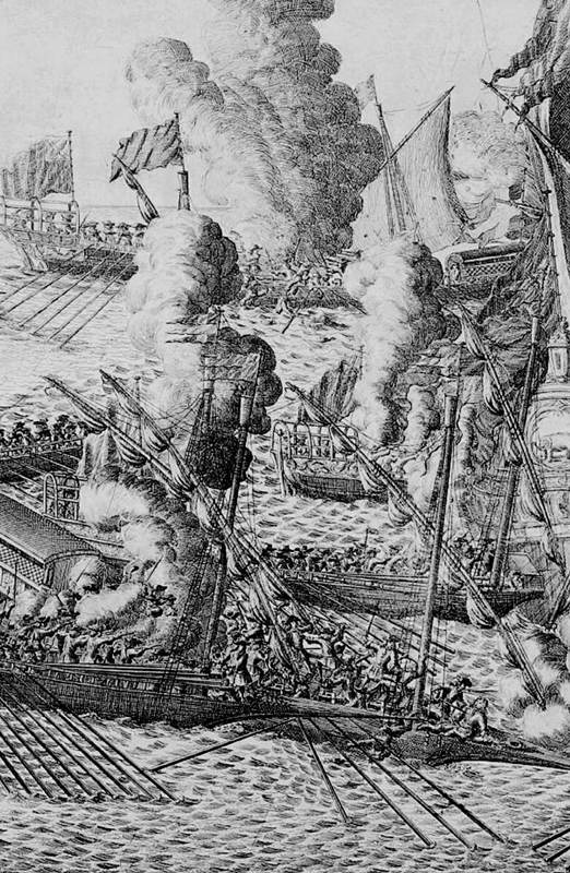 С низких скамповей им предстояло штурмовать многопушечный фрегат и высокие шведские галеры. Под огнем в упор 90 шведских пушек и сотен ружей им предстояло карабкаться на неприятельские суда.