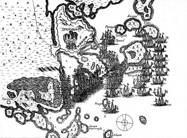 В заливе, занятом шведами, могло развернуться для боя лишь небольшое число русских скамповей.