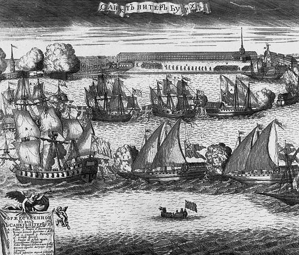 Захваченные у Гренгама шведские суда были приведены в Неву.