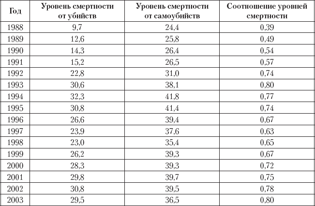 Уровень смертности от убийств и самоубийств в России (1988 2003)