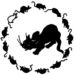 ЗАДАЧА № 9 Белая мышьВсе 13 мышей, окружающие эту кошку, обречены попасть ей на обед. Но кошка желает съесть их в определенном порядке, – а именно, каждый раз она отсчитывает 13-ю мышь по кругу в том направлении, в каком эти мыши глядят, – и съедает ее. С какой мыши она должна начать, чтобы белая оказалась съеденной последнею?