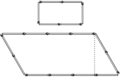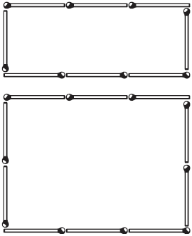 Из 18 спичек нетрудно сложить два четырехугольника так, чтобы один был вдвое больше другого по площади (рис. 10).