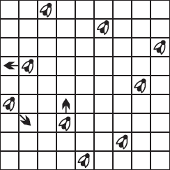 Стрелки на рисунке показывают, какие мухи переменили место и с каких клеток oни пересели.