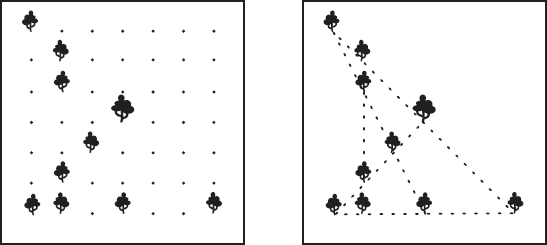 Деревья, оставшиеся несрубленными, были расположены так (рис. 15):