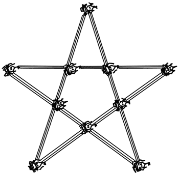 Некто желал построить 10 домов, соединенных между собою крепкими стенами; стены должны тянуться пятью прямыми линиями, с 4-мя домами на каждой линии.