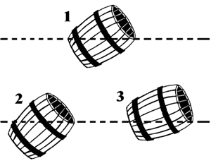 Самый простой способ – наклонить бочку так, чтобы вода дошла до края. Если при этом немного обнаружится дно бочки, – значит, вода стояла ниже половины. Если дно очутится ниже уровня воды, – значит, вода была налита больше, чем до половины. И наконец, если верхний край дна будет как раз на уровне воды, – значит, вода налита ровно до половины. Решение задачи № 13