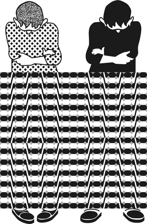 Пока вы смотрите на эти две физиономии, держа книгу неподвижно, они не обнаруживают ничего необычайного. Но начните двигать книгу вправо и влево, не переставая смотреть на рисунки. Произойдет любопытная вещь: физиономии словно оживут – начнут двигать зрачками вправо и влево, поворачивая также при этом рот и нос.