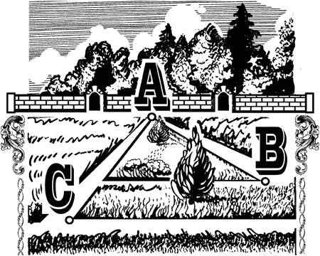 Вот эта задача: выдвиньте среднюю монету вниз на столько, чтобы между нею с каждою из остальных двух был промежуток, равный расстоянию между А и В (рис. 30).
