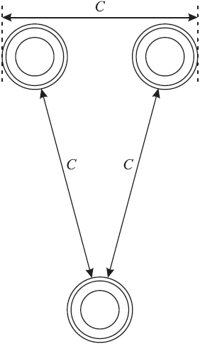 Оно как будто вполне удовлетворяет условию задачи, не правда ли? Но попробуйте измерить расстояния циркулем, – окажется, что вы ошиблись чуть не в полтора раза!