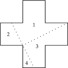 Сестра разрезала квадратный кусок материи на 4 части следующим образом (пунктиром показано, как она намечала линии разреза: от вершин квадрата к середине сторон). Из этих 4 кусков сестра сшила крест (рисунок 54).