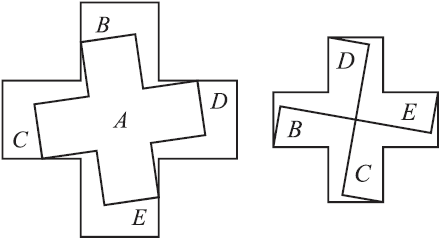 Сестра ухитрилась, не разрезав этих лоскутьев, сшить из них крест. Как? ЗАДАЧА № 54 Два креста из одного