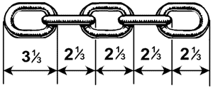Вы видите, что длина натянутой цепи составляется из полной ширины первого звена, к которой, с присоединением каждого нового звена, прибавляется не полная ширина звена, а ширина без двойной толщины звена.