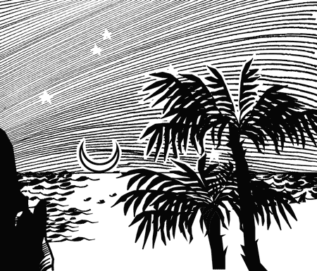 ЗАДАЧА № 78 Закат луныВы видите тропический ландшафт со странным изображением лунного серпа у горизонта. Правильно ли нарисована эта картинка? Нет ли здесь какой-нибудь несообразности?