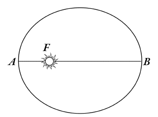 Рис. 19. Какую форму имела бы орбита Земли, если бы эксцентриситет земной орбиты был равен 0,5. В фокусе F – Солнце.