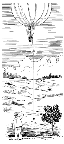 Роняя из рук вещь, вы видите ее падающей по отвесной линии, и вам странно думать, что кому-нибудь другому путь ее падения может представиться не прямой линией. А между тем именно так и произойдет для каждого наблюдателя, не участвующего вместе с нами в движении земного шара.