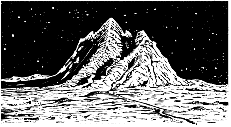 Кроме огромных кольцевых лунных гор, на Луне имеется, правда, и множество мелких кратеров, которые легко охватить взором, даже стоя в непосредственной близи. Но высота их ничтожна; наблюдатель едва ли будет здесь поражен чем-либо необычайным. Зато лунные горные хребты, носящие название земных гор: Альпы, Кавказ, Апеннины и т. д., соперничают с земными по высоте и достигают 7–8 км. На сравнительно маленькой Луне они выглядят весьма внушительно.