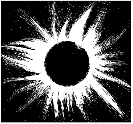Рис. 55. Вмоментполногосолнечногозатмения вокруг черного диска Луны вспыхивает «солнечная корона»